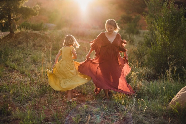 Day 3: Another sunrise wake up call but, this time, we all photographed each other. I’d brought about 20 dresses from my Wanderlove Wardrobe along with me and all of the girls tried them on and choose one they loved to frolic in the tall grass. The 13 of us were quite a sight – a dash of rainbow below the red rocks – and we had a ball creating new headshots for each other. It was so amazing to watch how it empowered everyone to dig deep and overcome their shyness or insecurity to step out from behind the cameras we love to hide behind and begin to shine in front of the lens.