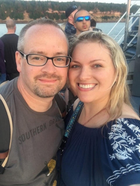 I called this our “We Survived” selfie. You can see the nasty seatbelt mark on my chest and my bruised lip. But at this point, we were so happy to have our minds off the accident for a much-needed scenic distraction that even the horrible sunglasses photo bombing in the background didn’t bother us too much.