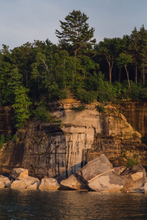 We scrapped most of our plans that were to involve biking and kayaking and we were simply unable to reach most of our destinations without a car (the RV is much too large to maneuver and park at many of the spots we’d planned on visiting). But there was one activity that we’d already purchased tickets for and wouldn’t require any crazy logistics: a scenic boat ride along the Pictured Rocks on Lake Superior. The tickets were for the July 2nd sunset trip but the company was wonderful about switching them to July 3rd so we would have a little more time to recover and make our way to the town of Munising, MI.