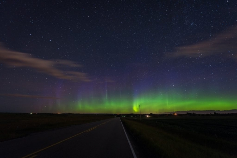 We’d planned to spend a week just north of Calgary before heading west to the park and even the area around Airdrie offered stunning farm and field views. One night, as we were driving back to the RV from a day trip, we saw those lovely, familiar flickering lights in the sky and quickly pulled over to be awestruck by the wondrous northern lights.